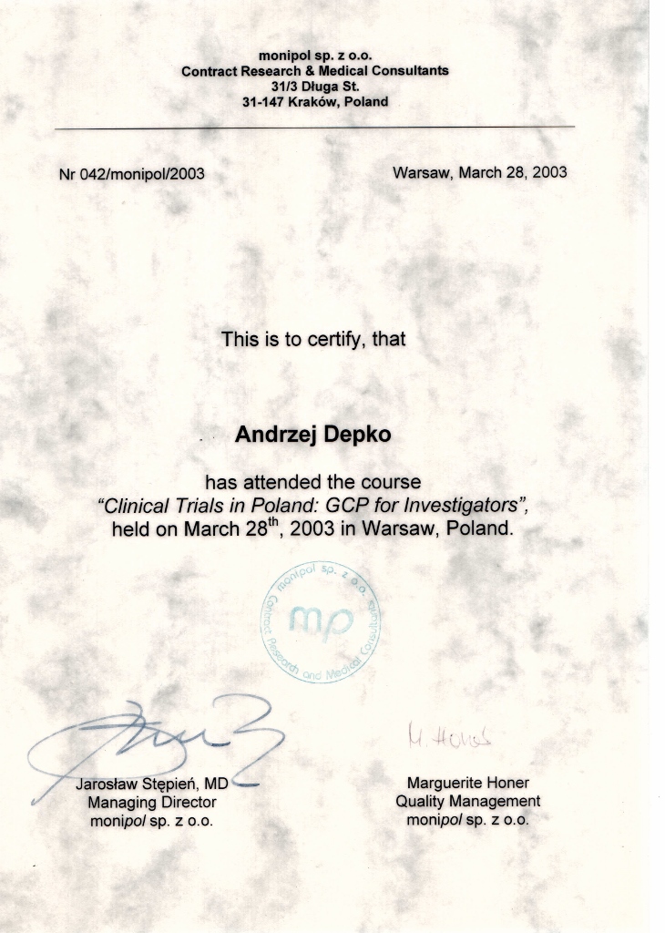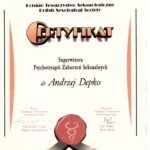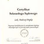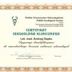 Od roku 2008 jest certyfikowanym seksuologiem sądowym oraz superwizorem psychoterapii zaburzeń seksualnych Polskiego Towarzystwa Seksuologicznego.